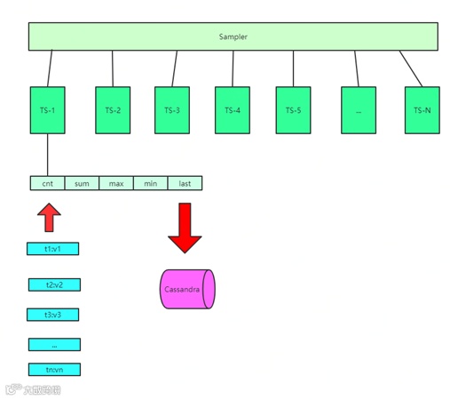 数据迟到问题:为了解决数据迟到问题,HoraeDB的数据抽样器对每个时间序列的抽样结果暂存一个周期,等待迟到的数据到来,然后再存入到底层Cassandra;