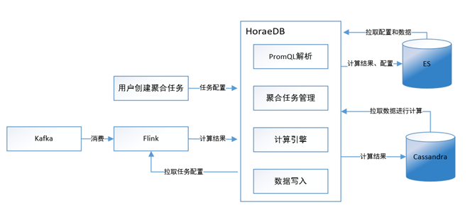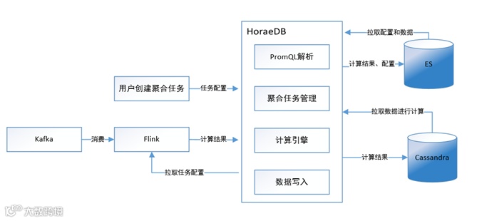 批量聚合计算使用的是拉模式进行数据聚合计算,核心逻辑是HoraeDB根据用户创建的聚合规则,设置一些定时计算任务,计算任务会定时向底层存储层发起数据拉取和计算,计算结果写回到存储中,批量聚合计算有以下的特点: