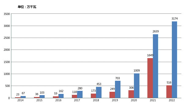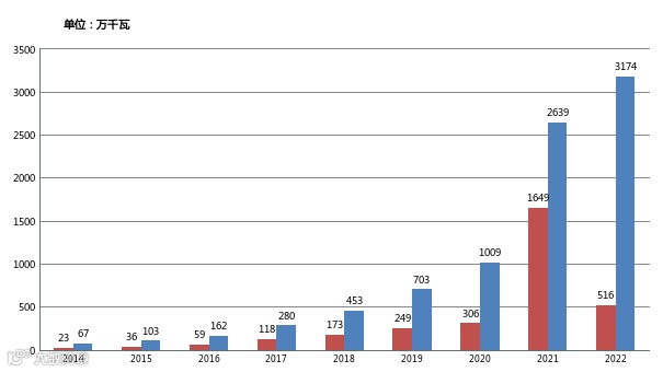 图1:2014年至2022年中国新增和累计海上风电装机容量