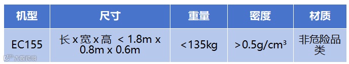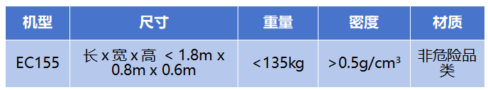 所选用的直升机需要具备绞车作业条件。EC155机型绞车作业最大商载为135kg,绞车吊运货物限制见表2。