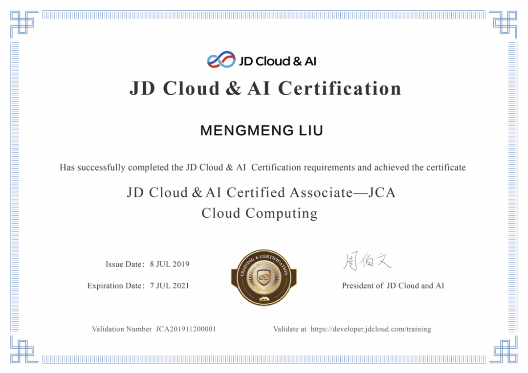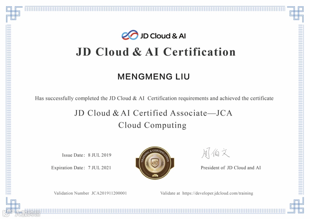 目前我们拥有京东智联云云计算助理工程师认证(JCA)及 京东智联云云运维助理工程师认证(JCA)为京东智联云云基础产品用户和运维人员提供专业技术认证。该项认证内容包括京东智联云的计算服务、网络服务、存储服务及安全等方面的核心产品,是对从业人员或希望进入云行业人员的专业性技能认证。