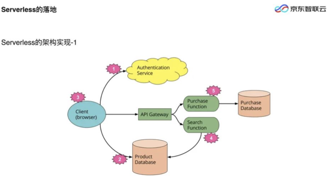 Serverless的常见三层架构:客户端、服务端、数据。所有的事情都可以在这里去处理,包括购买、搜索、用户管理等。