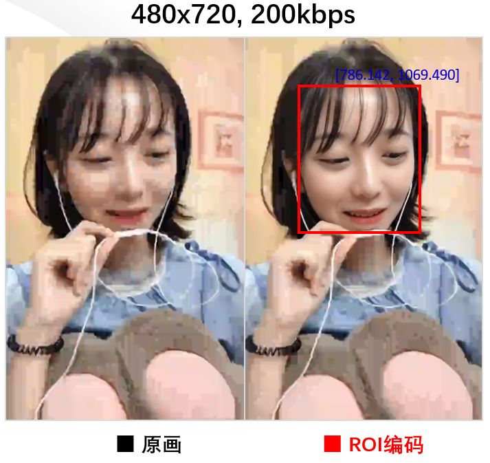 感兴趣区域(ROI)变质量编码,通过设定的感兴趣区域(通常为人脸),在网络带宽或存储空间有限的情况下,提供既符合人眼观看画质要求,又满足网络传输或空间存储的的高质量视频编码。