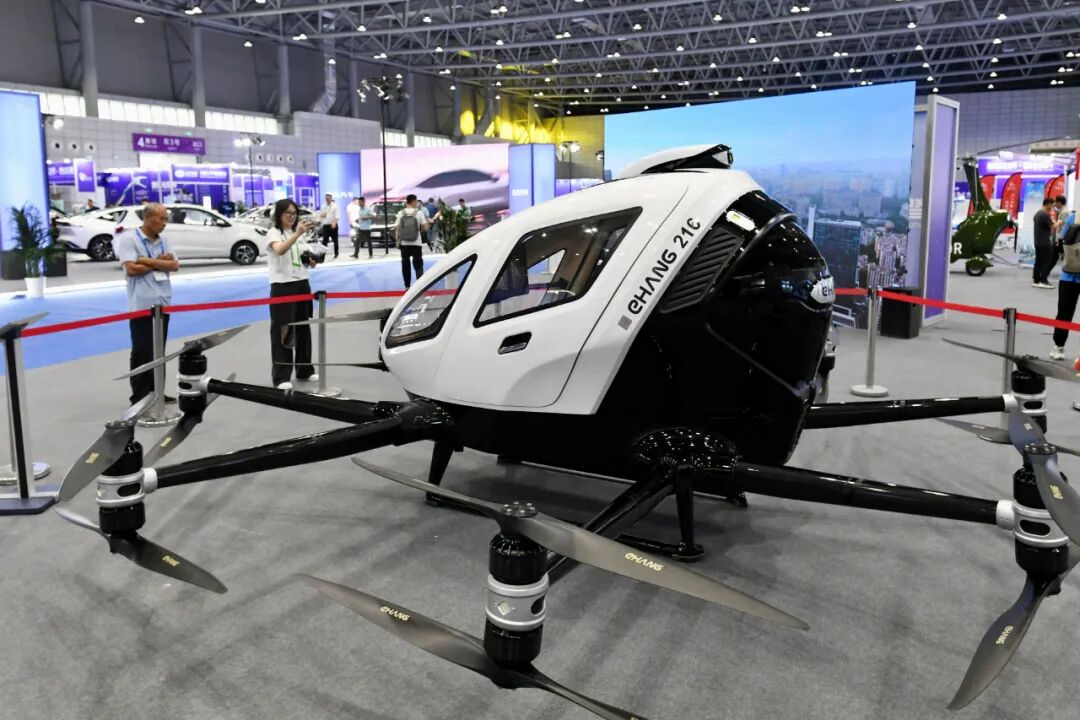 在2023世界制造业大会展馆亿航展台,工作人员展示无人驾驶飞行器。合肥日报全媒体记者 张大岗 摄