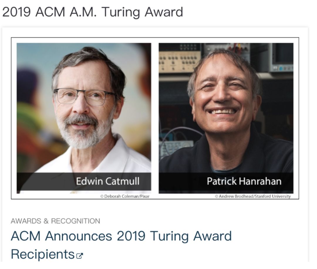2019年图灵奖公布,皮克斯动画室元老、计算机图形学先驱Hanrahan和Catmull获奖。