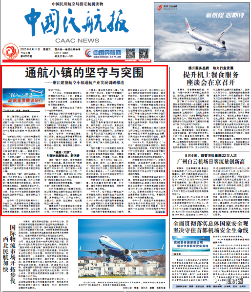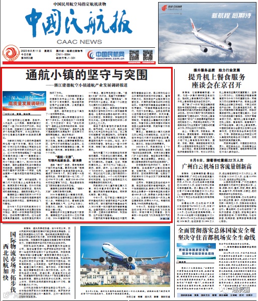 8月11日,《中国民航报》头版头条刊发重磅调研文章《通航小镇的坚守与突围 ——浙江建德航空小镇通航产业发展调研报道》介绍全国第一个基本成型的通用航空特色小镇——浙江建德航空小镇。可以说这一篇非常深刻的调研剖析文章,对通航发展的痛点、堵点和难点也没有回避,给我们发展通航提供了重要借鉴参考,非常难得。思路一变天地宽,下面让我们一起来学习下: