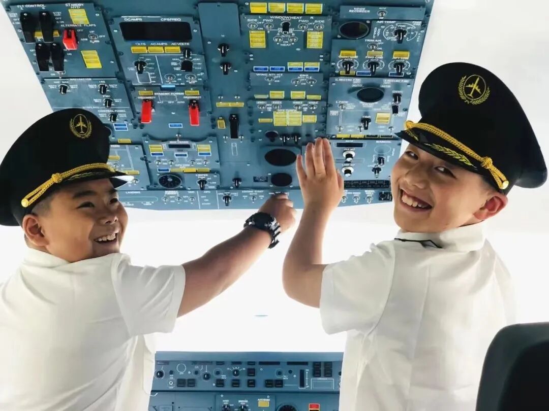 馆内布置了不少依据航空科学原理的模具,可供学生们操作感受。最令他们好奇和最想体验的是一排塞斯纳飞行模拟机。在逼真、生动、刺激的模拟机上,孩子们可以飞越山丘、湖泊、森林、城市,从小就在心里种下飞行的种子。当参观体验临近结束时,学生们还可以穿上馆内提供的小机长服合影留念。一个小时的科普研学时间虽短,但也许这就是航空文化传播最理想的滋润方式。