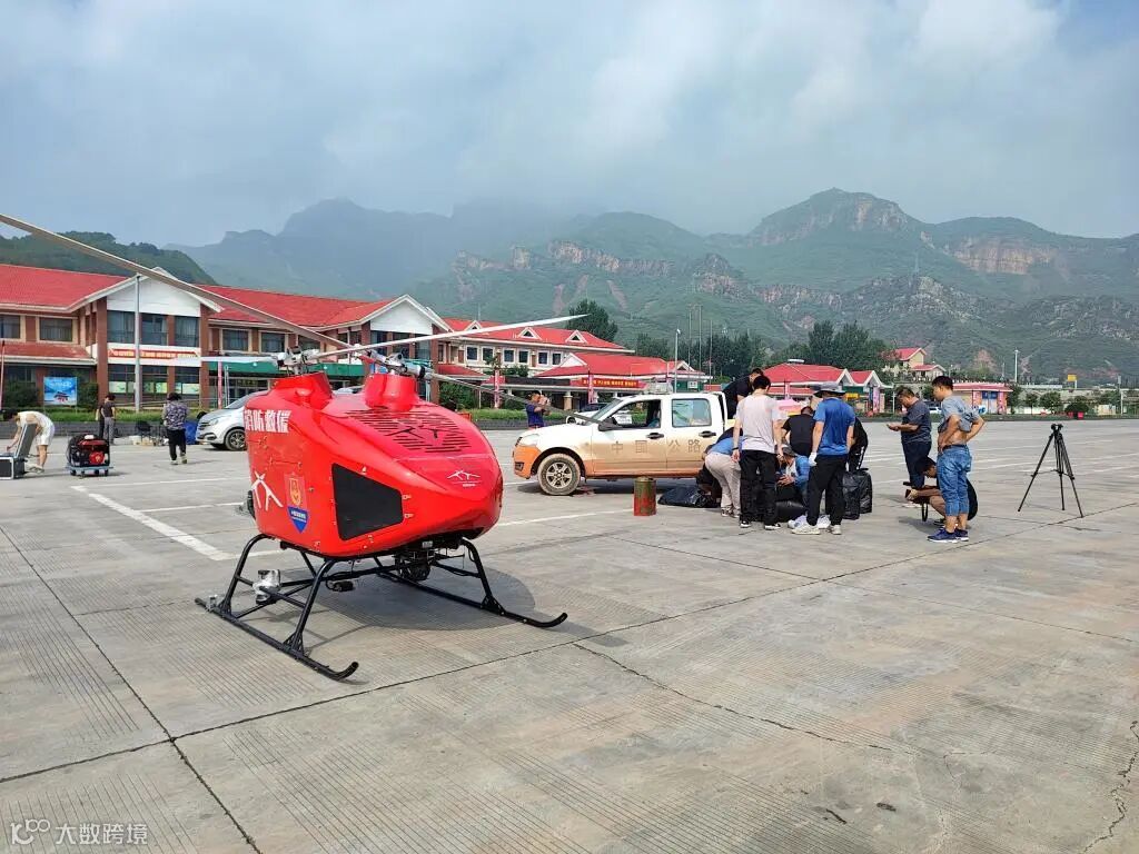 参与本次救援任务的JZ-550型交叉双旋翼无人直升机