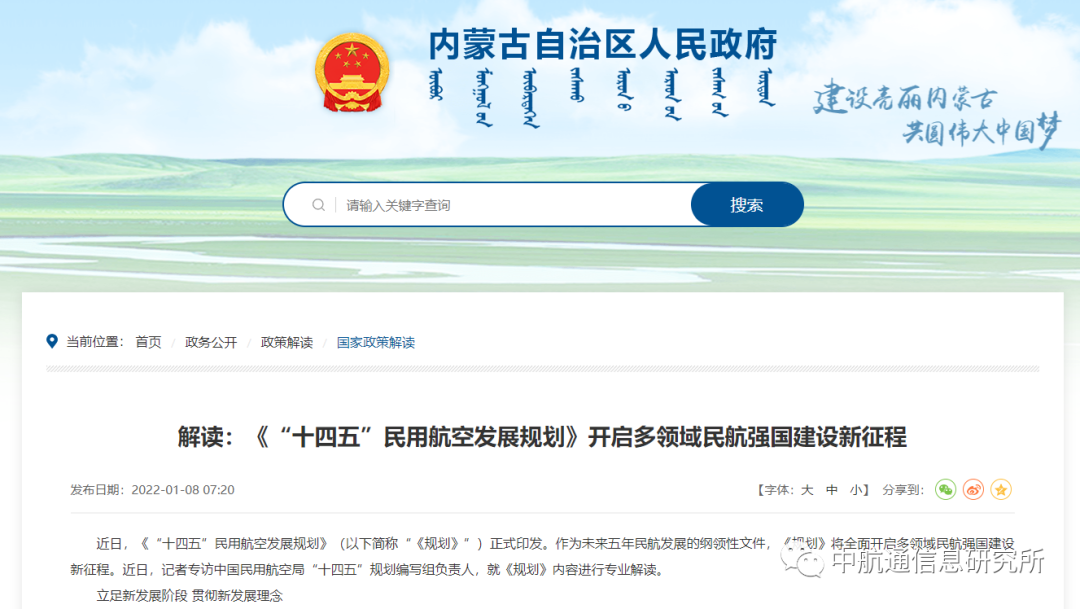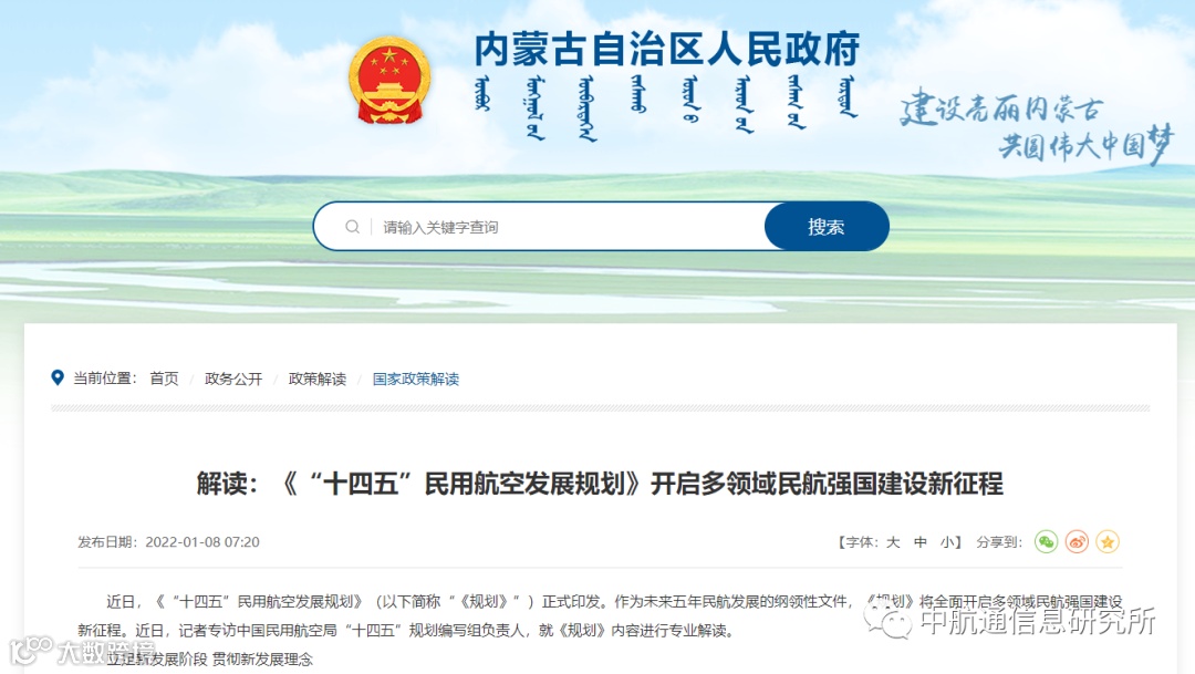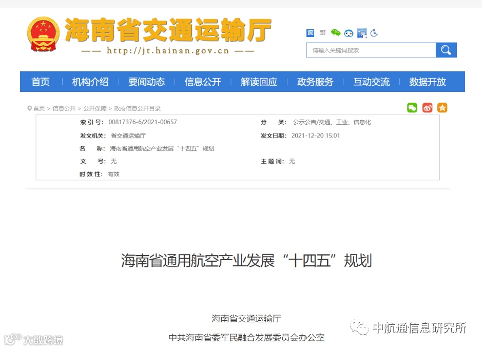 2021年,广东、广西、山东、山西、重庆、浙江、海南、湖南、江苏、江西等地方政府先后发布“十四五”综合立体交通规划,黑龙江、海南、内蒙古还发布了通用航空专项规划,加快发展通航短途运输与其他交通方式的一体化布局建设。
