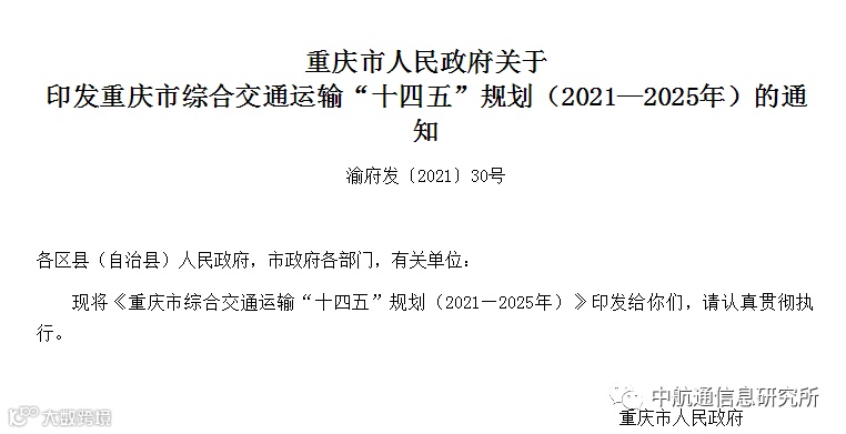 《重庆市综合交通运输“十四五”规划(2021—2025年)》提出,探索开展通用航空短途运输试点,推进“干支通、全网连”,改善偏远地区居民出行条件。