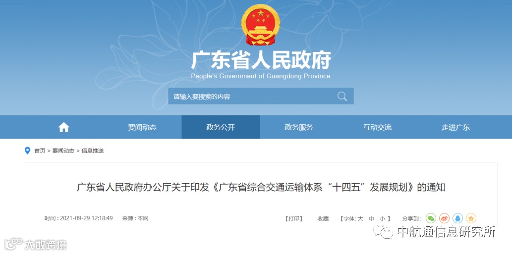《广东省综合交通运输体系“十四五”发展规划》提出:构建立体互联的综合交通网络,加强粤港澳大湾区通航合作,构建覆盖全省、连通泛珠三角地区的通用航空网络大通用航空综合服务网络。