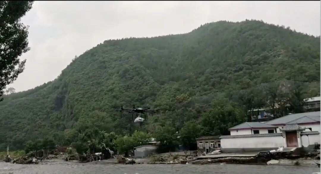 7月31日晚,联合飞机北京和深圳基地派出TD550、TD220无人直升机、TA-Q20多旋翼无人机组成的救援团队抵达北京门头沟受灾区域开展救援工作,承担物资投送、现场监测、通讯中继等救援任务。8月1日,又派出了第二批无人机救援队赶赴河北涿鹿,TD220通讯中继无人机挂载4G电信基站顺利起飞,在灾区上空执行应急通讯任务,大面积覆盖受灾地区,迅速恢复灾区通信网络,打破“信息孤岛”,架起抢险救援的生命“天线”,极大地提升了救援效率。
