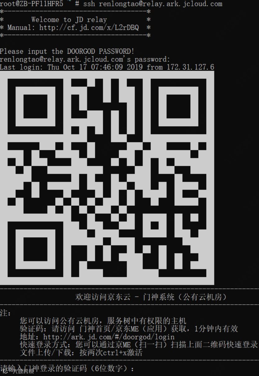 该模块是用户登录门神的“前端”,以独立容器方式启动,其sshd开启kerberos认证。用户使用ssh协议登录时需要输入用户名和密码,kerberos验证通过后登录容器;login-shell二次验证还需要用户输入从云翼获取的验证码,或者使用京me扫码验证,二次校验无误方可进入用户操作界面。
