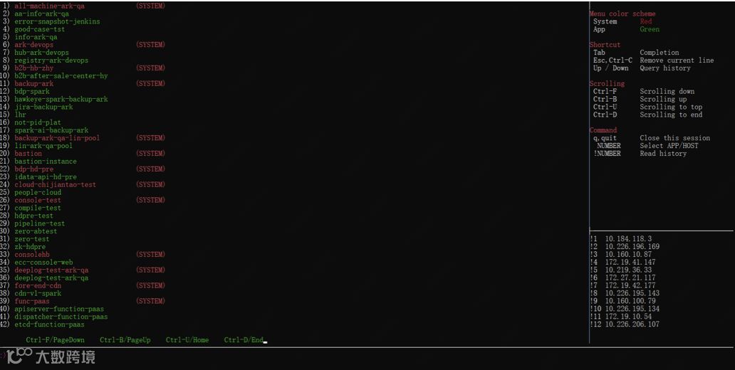 d、输入右侧历史记录的index number登录(以“!”开始)。