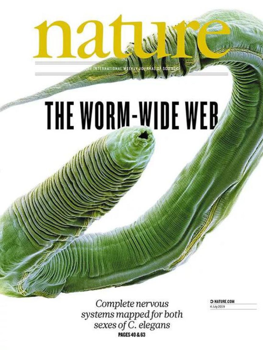 大脑功能是如何从神经回路的运作中产生的,第一次有了比较明确的解释。近日,连接组学迎来里程碑式的突破。阿尔伯特·爱因斯坦医学院Scott Emmons教授研究团队成果登上《Nature》杂志封面,首次完整揭开动物神经系统的神秘面纱。研究提供了两种性别的秀丽隐杆线虫从感觉输入到终端输出的全部神经连接,并对行为调控网络做了多层次分析。