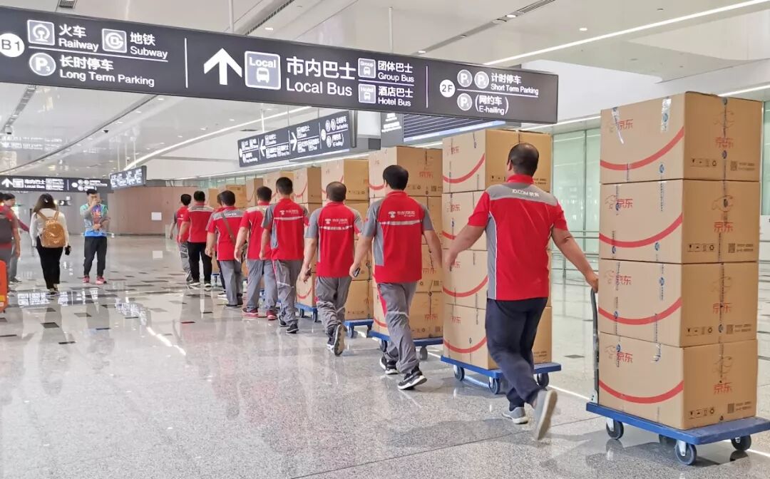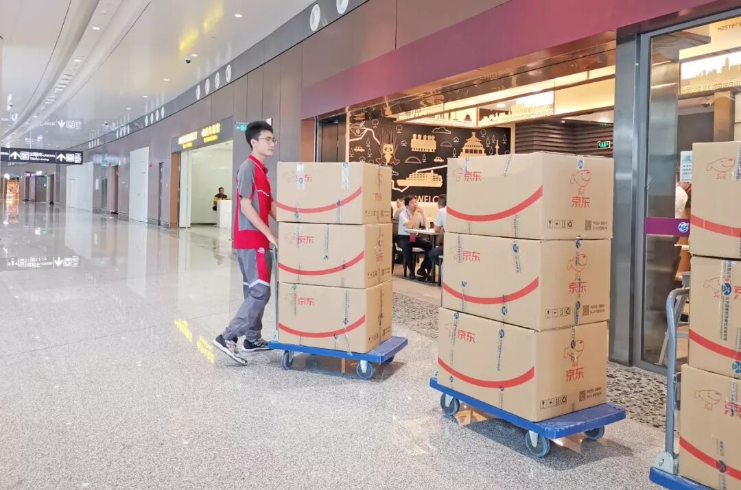 新机场开航后,旅客们可以在机场2层抵港大厅和3层出发大厅的安检处找到京东快递的门店。