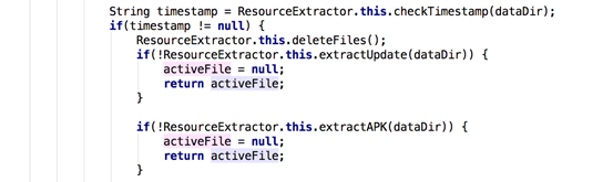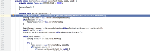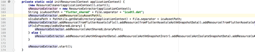 解压部分 asset 下的资源到 data 分区,以下是一些片段的代码,那为什么要解压呢?放在 asset 下也是可以通过 assetManager 读取的。这里 google 应该是从性能角度要求解压的,因为频繁的使用 assetManager 读取 asset 是很容易造成多线程阻塞的,一旦阻塞了将会导致整个 Flutter 业务全部无法渲染,所以需要解压一些核心的资源库,而不是解压了所有的资源 (例如图片就没有解压)