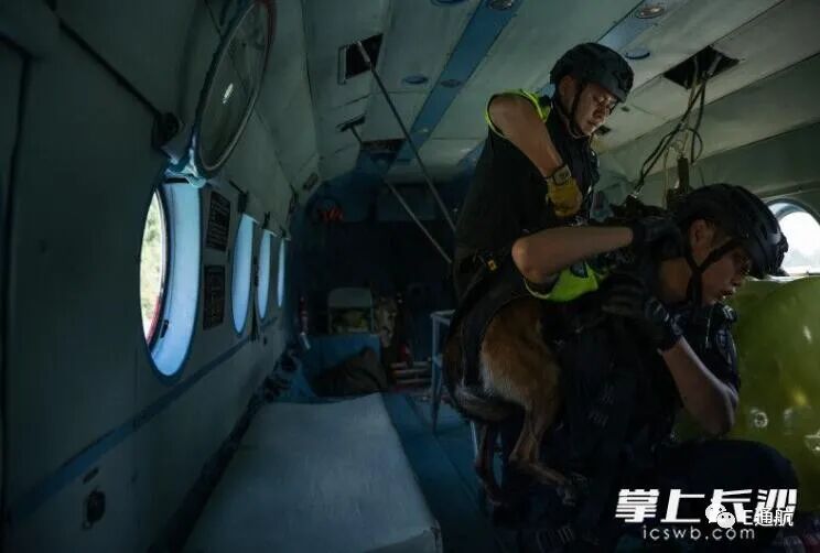 据悉,这是长沙市公安局特巡警支队今年第一批选拔出的参与此类训练的警犬训导队员。他们经过一周以上的携犬理论培训、飞行体验、平地索降等科目训练,继续开展空中携犬索降训练。