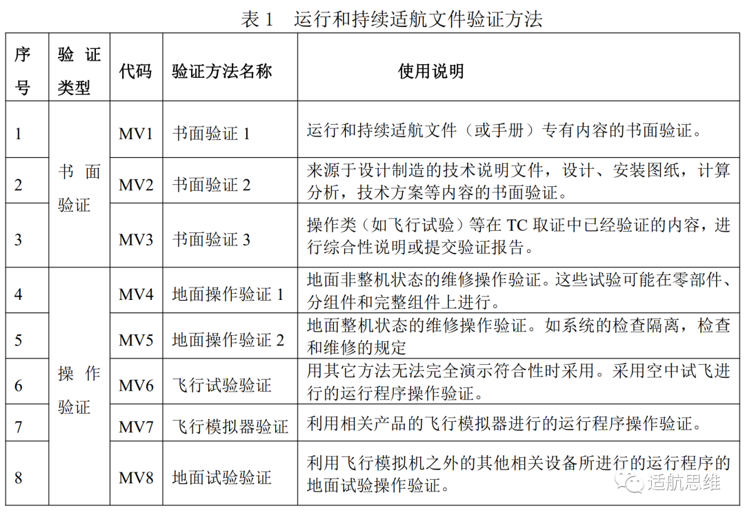 分析FAA、EASA、CAAC颁布的规章和指导材料、结合我国工业现状以及运行和持续适航文件的自身特点和内容,运行和持续适航文件符合性验证可分为书面验证和操作验证两大类,如表1所示。