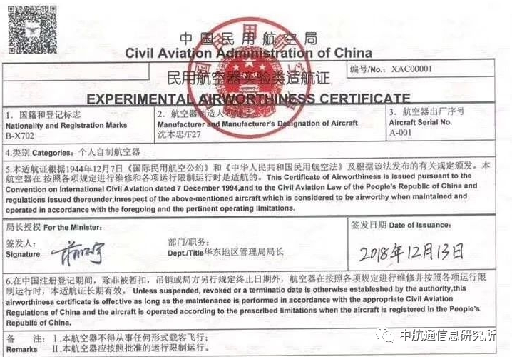 二是特殊适航证,主要分为初级类、运动类和限制类三类。
