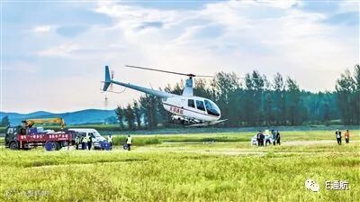 9月4日,赤峰市宁城县正在利用直升机对玉米、大豆进行喷药作业。