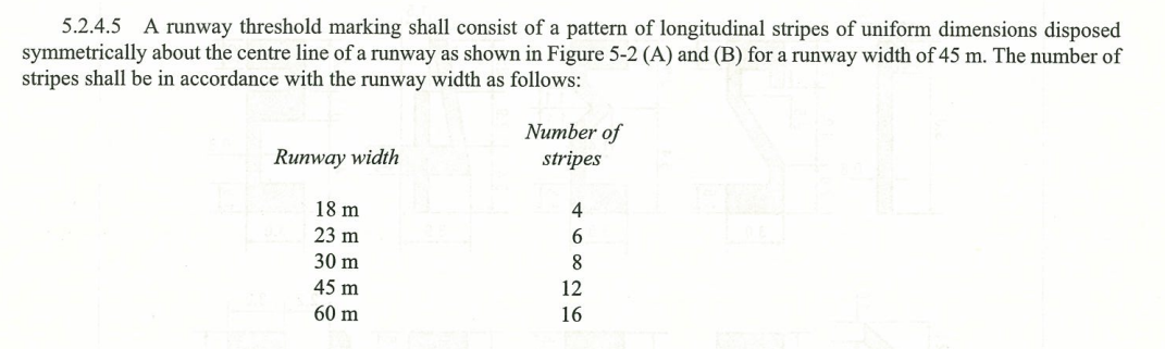 简单来说就是,跑道入口标志是由一组尺寸相同、位置对称于跑道中线的纵向线段组成。并且线段数量与跑道宽度有一定的对应关系,例如60米宽的跑道,跑道入口标志的线段数量为16。