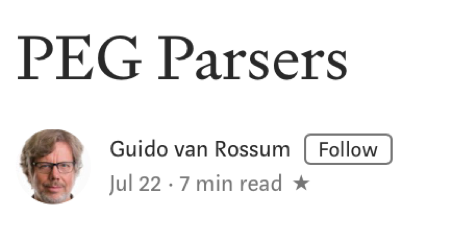 7 月22 日,Python之父Guido 在Medium上发表了他的第一篇博文《PEG Parser》。在该文中,Guido说他正在考虑使用PEG Parser 代替现有的类LL(1) Parser(名为pgen),来重构Python 解释器。原因是现在的pgen 限制了Python语法的自由度,使得一些语法难以实现,也让当前的语法树不够整洁,一定程度上影响了语法树的表意,不能最好地体现设计者的意图。