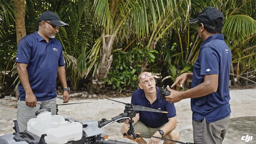 诺尔斯博士带领团队在马尔代夫使用T30 农业无人机进行精准喷洒
