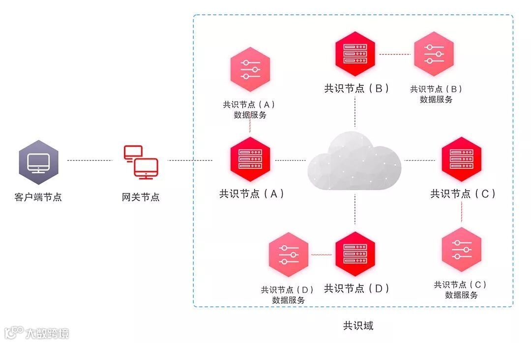 共识服务:共识服务是JD Chain的核心实现层,包括共识网络、身份管理、安全权限、交易处理、智能合约和数据检索等功能,来保证各节点间账本信息的一致性。