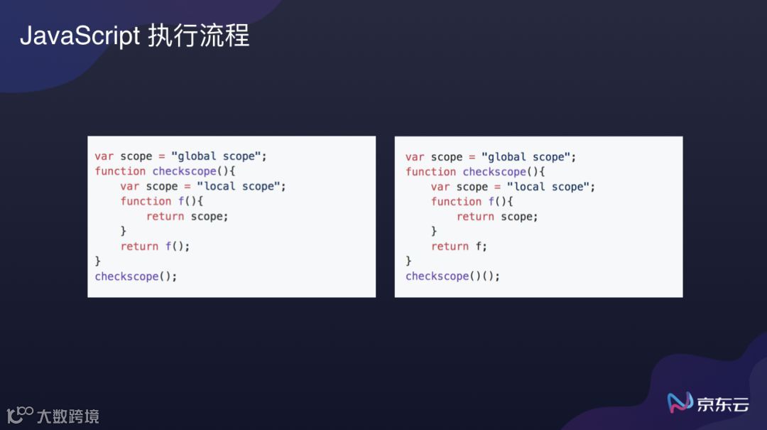 我们知道 JavaScript 是词法作用域,所以函数的作用域在函数定义的时候就已经决定了。在 JS 中最常见的作用域有全局作用域、函数作用域,并且 JavaScript 会通过一个叫 ECS 的栈结构去管理这些上下文,我们知道栈的数据结构特点是 FILO。