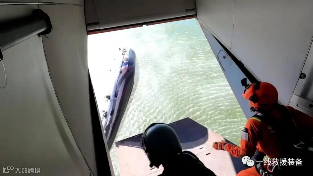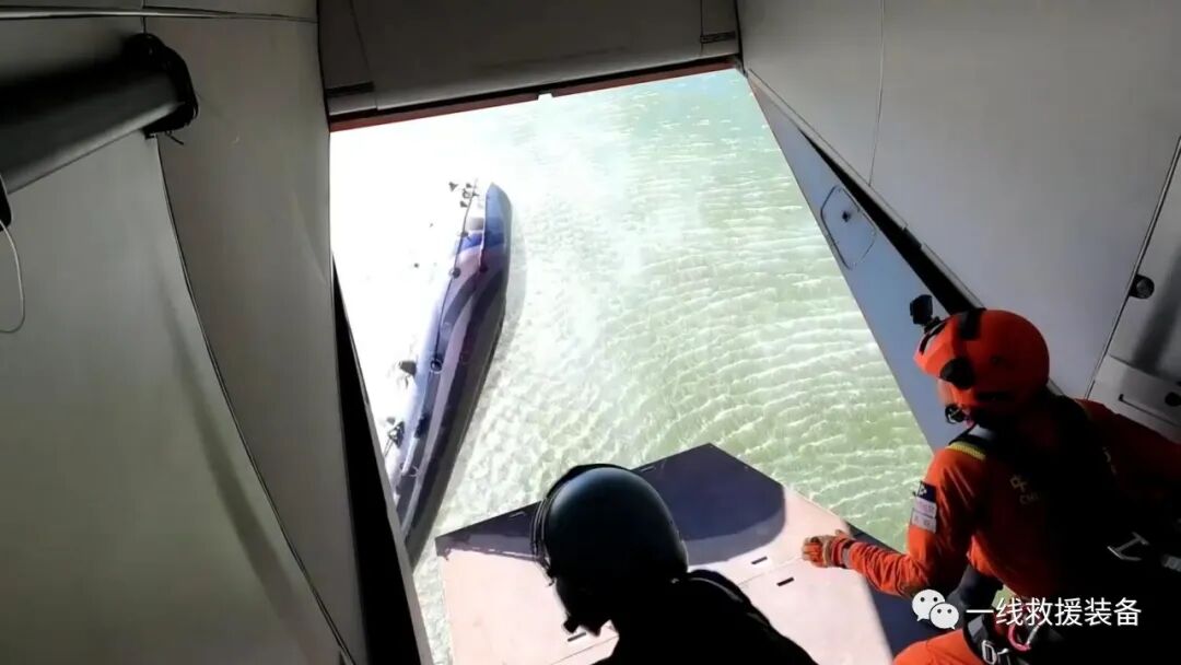 ▲救援人员通过直8AWJS直升机,直接入水开展水域救援