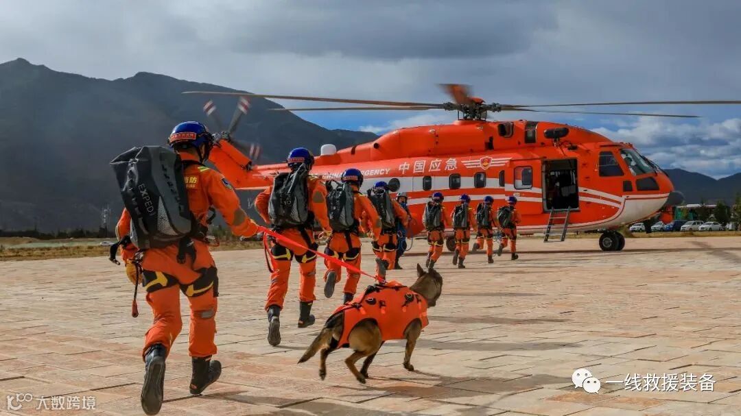 ▲昆明航空救援支队特种救援大队16名救援队员、2只搜救犬分别登机直8-A