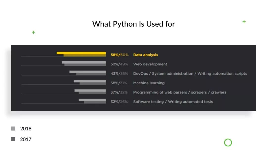 目前,很多公司的项目或者业务都会被要求涉及大量的数据处理。Python是与大数据、机器学习和/或人工智能相关的所有类型开发的完美选择。这是因为它具有用于这些类型任务的强大包(如Panda和NumPy),以及通过API进行数据可视化的广泛可能性。