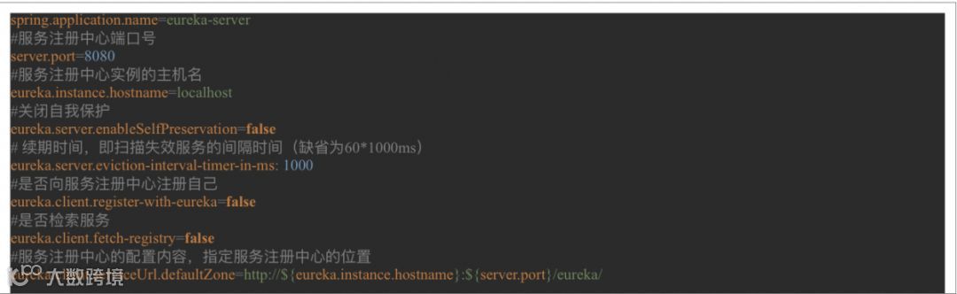 在默认情况下,服务注册中心也会把自己当做是一个服务,将自己注册进服务注册中心,所以我们可以通过配置来禁用他的客户端注册行为,修改application.properties文件: