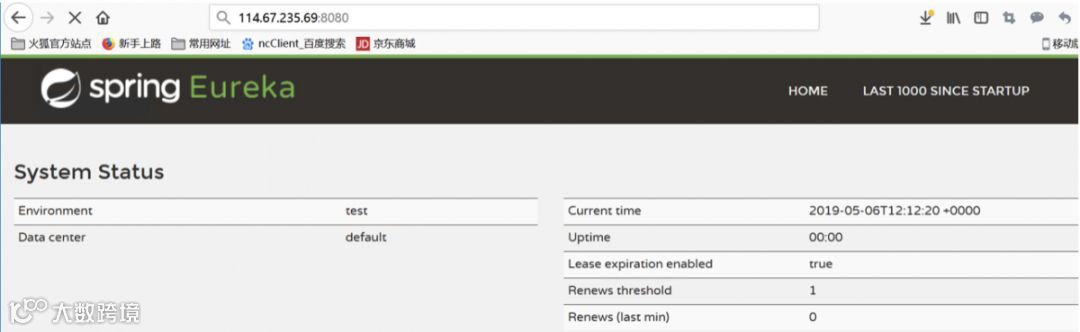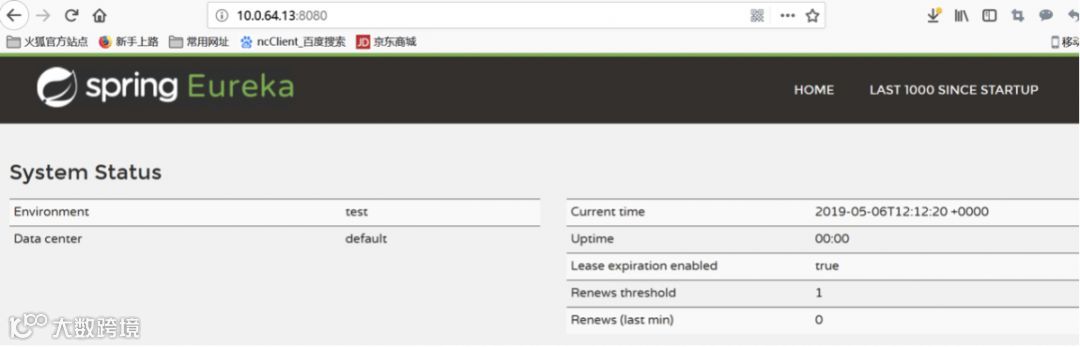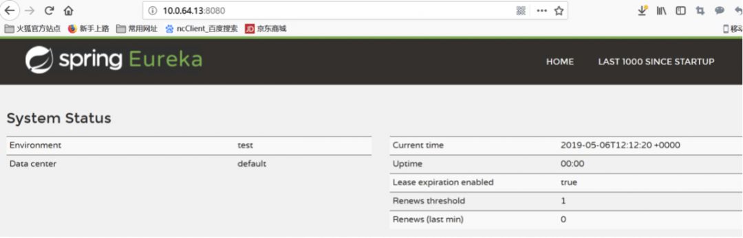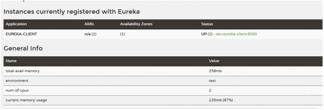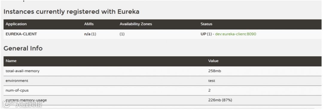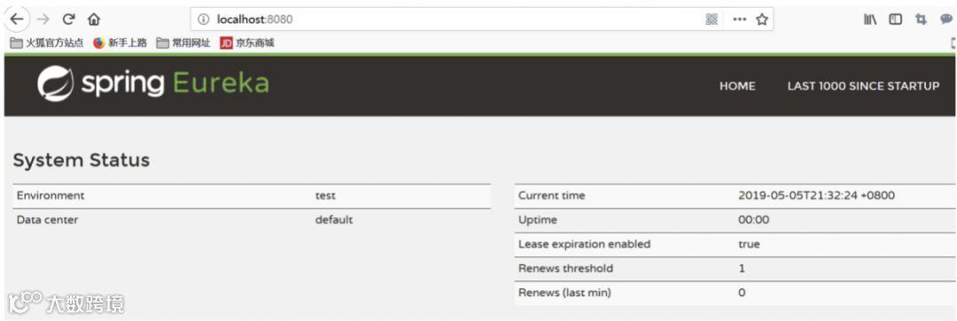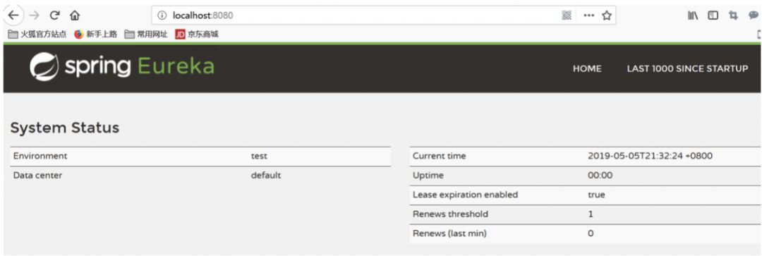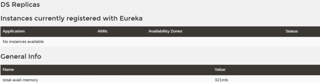 启动应用,并访问http://localhost:8080/即可看到Eureka信息面板,如下: