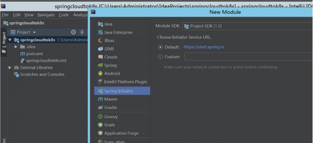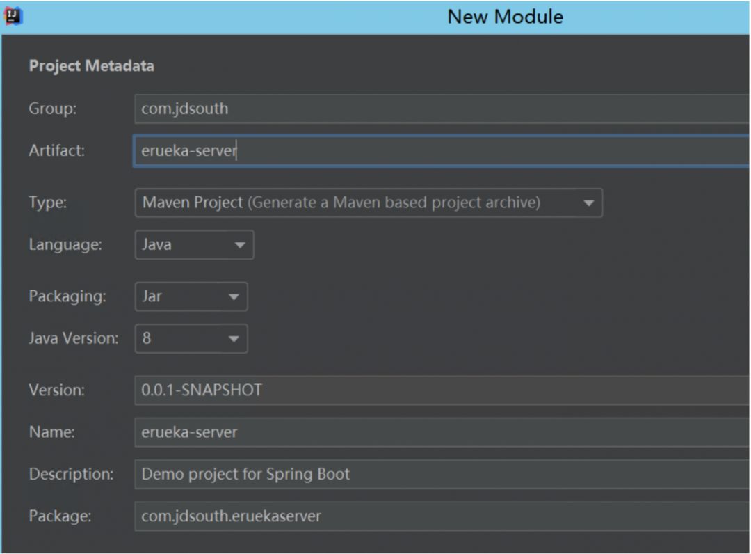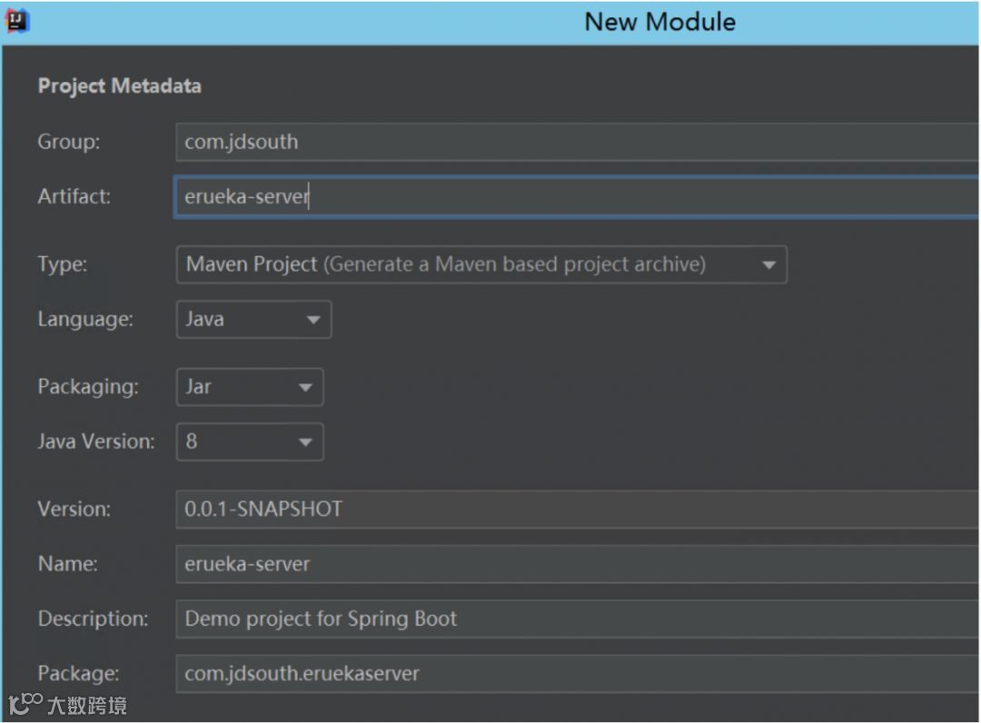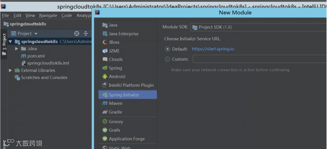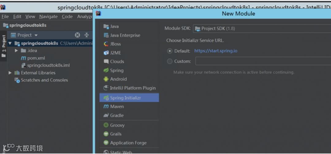 创建完成后删除src目录,然后新建一个server,选中project → new → module,注意选择Spring initializr