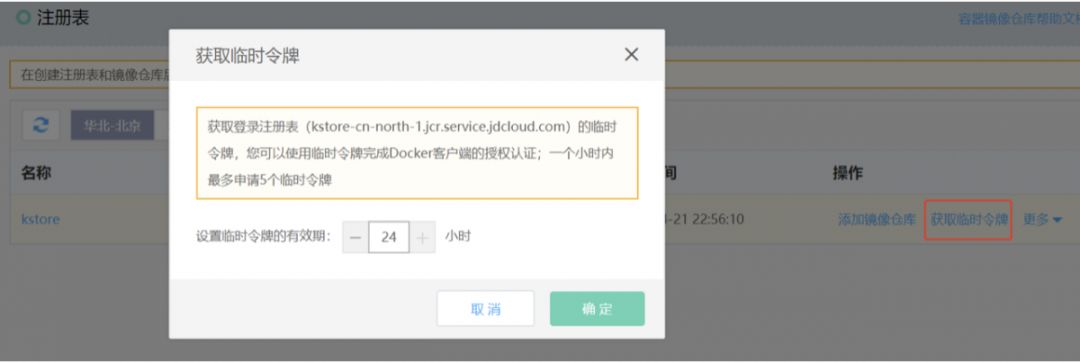 jdc cr get-authorization-token --region-id cn-north-1 --registry-name kstore