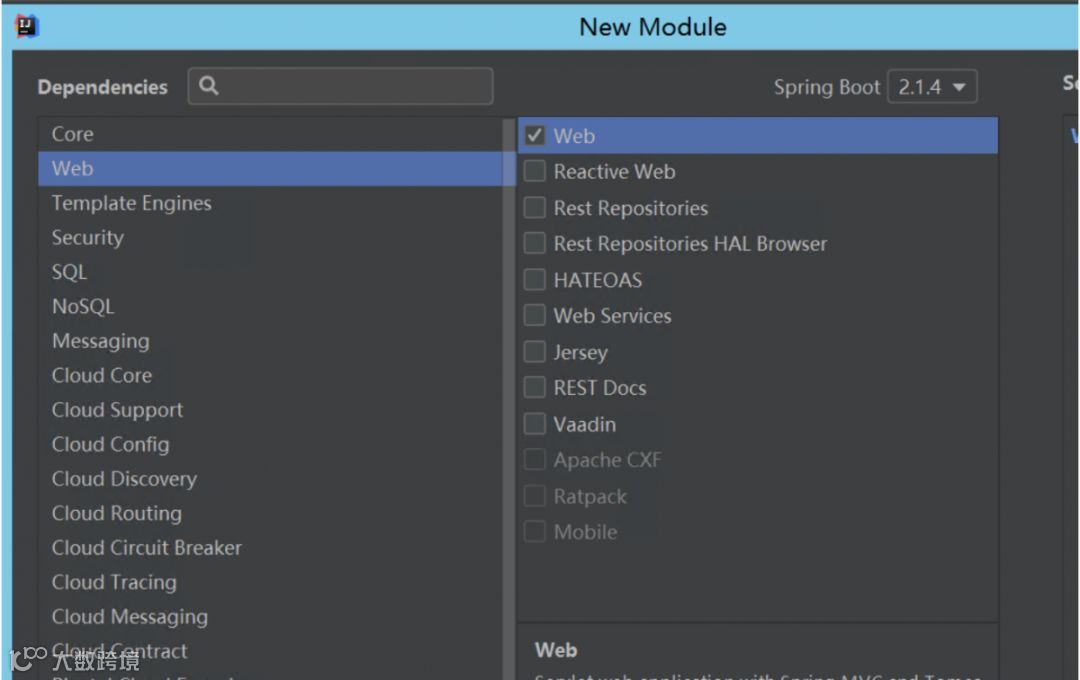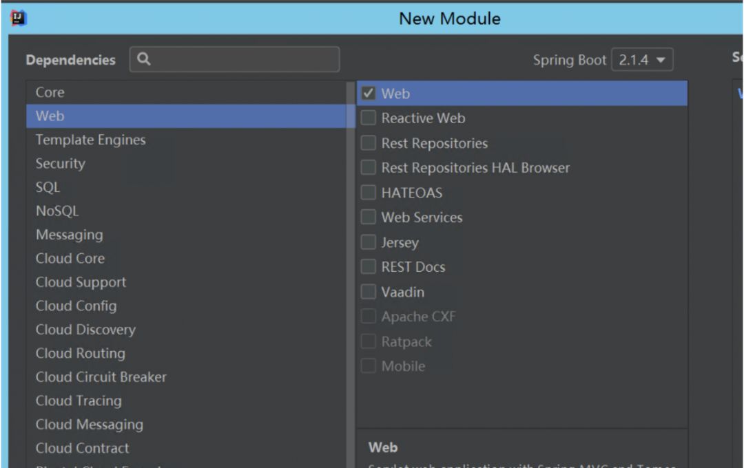 创建方式如eureka-server模块类似;在选择组件的时候需要选择对应的组件: