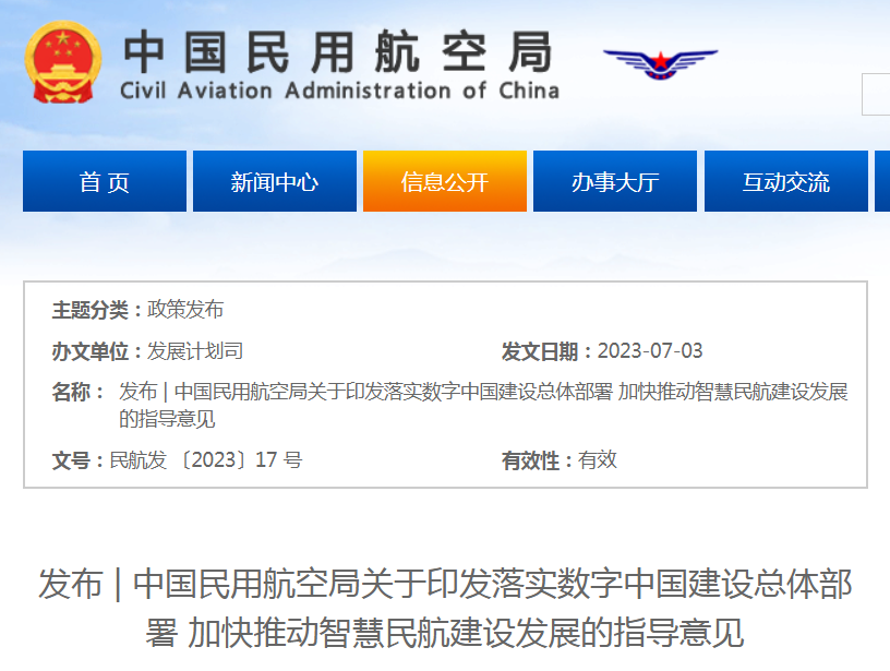 ■ 7月3日,民航局印发《关于落实数字中国建设总体部署 加快推动智慧民航建设发展的指导意见》(以下简称《意见》。《意见》明确扩展丰富通用航空业态。加快建设低空飞行服务站,推进通用航空航行情报资料数字化,构建低空飞行数字化保障服务体系;加大通用航空新兴消费服务产品精准化、个性化投放;促进通用航空与应急、医疗、旅游、交通等智慧城市产业融合发展。拓展无人驾驶航空器在低空运输、应急救援、航空拍摄、国土测绘、农林植保等场景应用。《意见》还提出探索基于算力的航班融合运行和有人无人融合运行,加快推进新一代空中交通管理系统开发验证。「低空经济观察」将部分内容摘录如下。