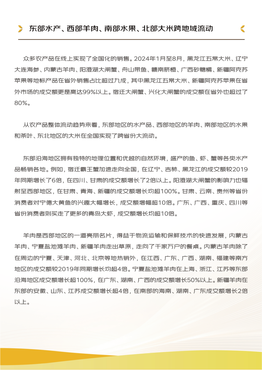 (附全文下载)京东《2024线上农产品流动报告》:农产品加快“走出去” 五常大米等众多农产品省外销售占比超九成