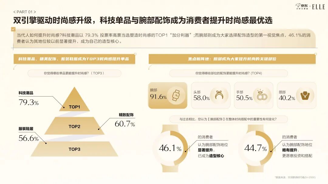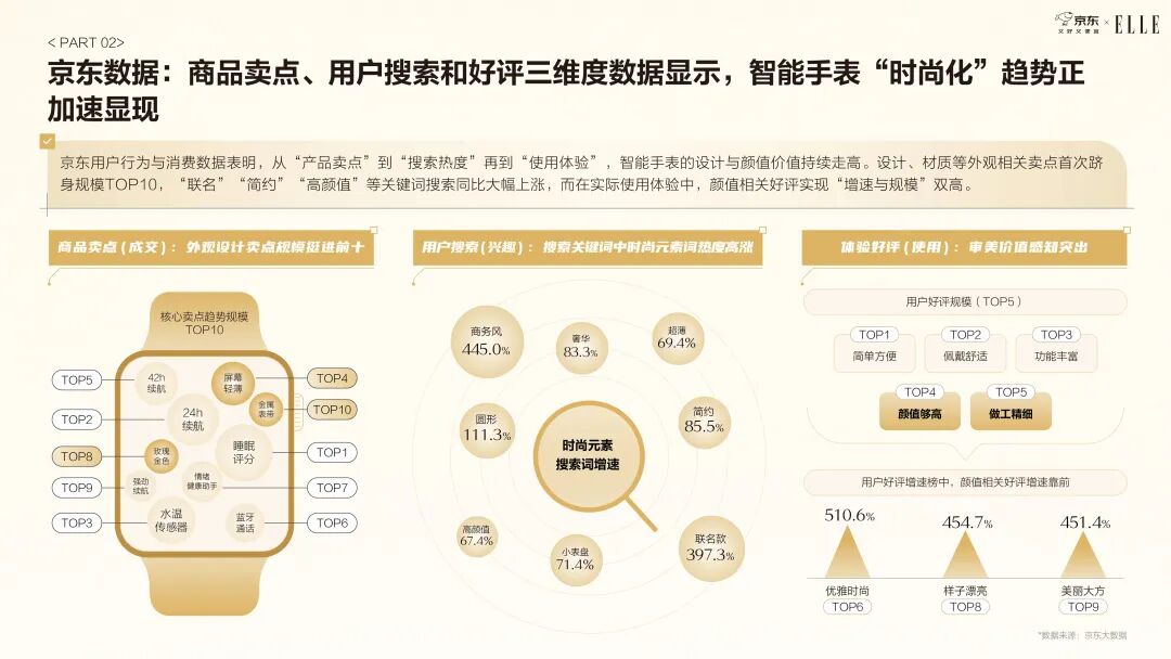 基于主客观数据的核心洞察,京东消费及产业发展研究院联合京东数码3C与时尚杂志《ELLE》共同发布《京东2025智能手表时尚趋势白皮书》(以下简称“白皮书”),从社会观察、用户消费行为、时尚穿搭风格等多重维度,系统呈现智能手表从数码工具向“生活方式符号”的演变之路。