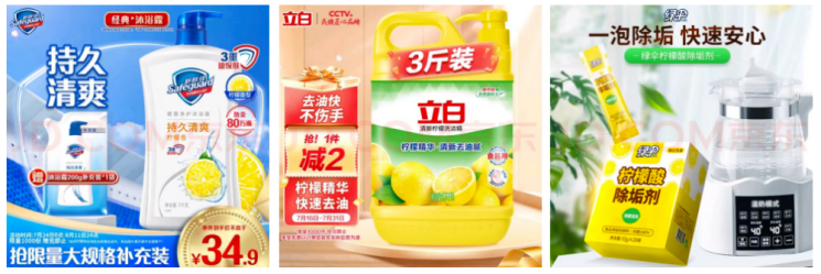 柠檬富含维生素C和抗氧化物质,是纯天然的美容护肤佳品,促进改善肤色暗沉、提亮肤色。观察显示,京东上舒肤佳品牌的柠檬香型沐浴露在京东沐浴露热卖榜中已连续多天蝉联榜首。同时,柠檬中的酸性物质也是天然的“抗菌剂”和“除油剂”,能够在清洁中派上大用场。在京东家庭清洁洗洁精热卖榜TOP 10产品中,有5款是添加了柠檬精华的产品,其中绿伞品牌的一款柠檬酸除垢剂,30天加购飙升5倍。