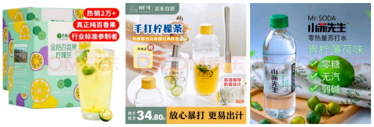 从口感上来说,柠檬最大的优势是,本身的含糖量很低,与当下消费者追求0卡0负担的健康饮食理念非常契合,消费者热衷于使用柠檬搭配各种果汁、气泡水等,自制出既清爽又健康的夏日饮品。在艺福堂茗茶京东自营旗舰店,金桔柠檬百香果冻干水果茶已有200万人种草,10万+人购买,2万+人回购。树可京东自营旗舰店里,手打柠檬茶工具套装近15天热度飙升171%。小苏先生品牌的青柠薄荷苏打水30天种草飙升5倍。