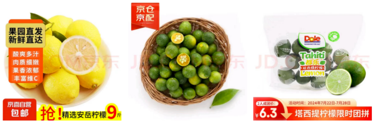 消费者购买柠檬时除了会关注柠檬的种类外,消费者对产地直发、源头直采、新鲜送达等产品产地产区信息的关注度也较高。事实上,在安岳、海南等柠檬主产区,京东采销深入产地,严格筛选农户及产品,通过源头采摘减少中间环节成本,以更短链路,更低价格,将更新鲜的优质柠檬从产地直接送达消费者。观察显示,在京东柠檬热卖榜的TOP 10商品中,有5款安岳黄柠檬,两款海南香水柠檬,两款海南小青柠。