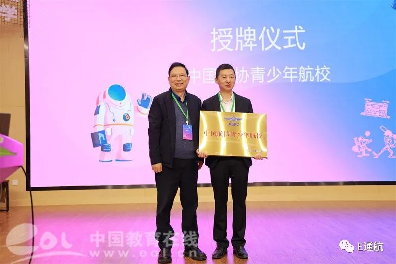 会上,杭州市余杭区海辰小学被授予由中国航空运动协会ASFC认证的“中国航协青少年航校”,浙江省航空运动协会会长范建钢亲自为海辰小学授牌。这意味着学校成为了浙江省唯一一所被授予该称号的公立小学,也是除校外培训机构外,全省唯一可以为学生发放一至三级模拟驾驶飞行等级证的公立小学。从此,实现孩子们筑梦蓝天的梦想正式启航,学校也将努力为中国航天航空事业培养得力接班人。