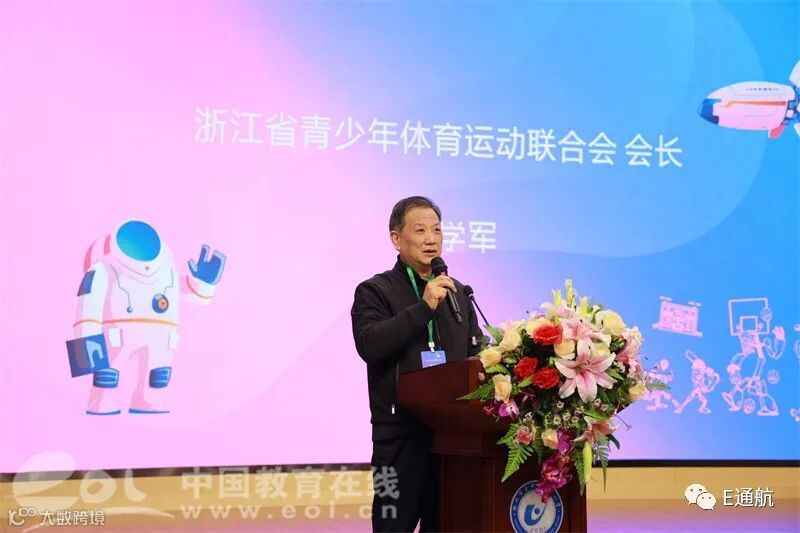 原浙江省体育局副局长、党委副书记,浙江省青少年体育运动联合会会长鲍学军发表讲话。他指出青体联会应更加具体深入地谋划这些项目发布的途径,推动更多学校和培训机构积完善并优化课后服务,为“双减”政策下的学校提供更加完善系统的智能体育项目课程。