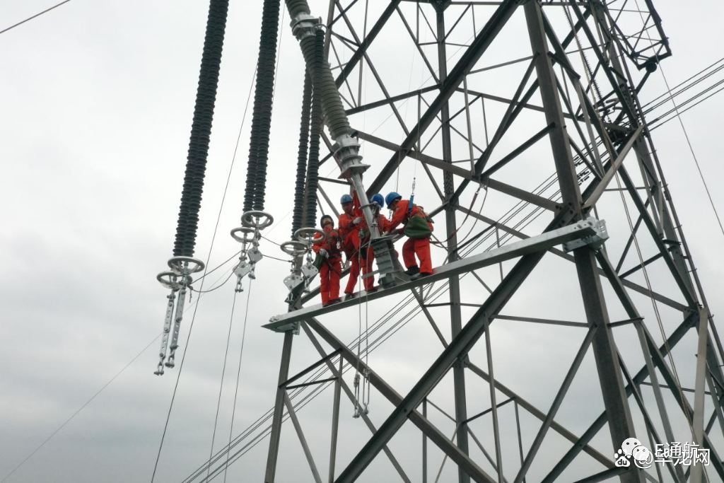 随后,施工人员开展避雷器支架吊装、避雷器本体及绝缘子拉索吊装、安装等作业。经过近3个小时的高空施工,±800千伏复奉线504号塔避雷器加装作业圆满完成。