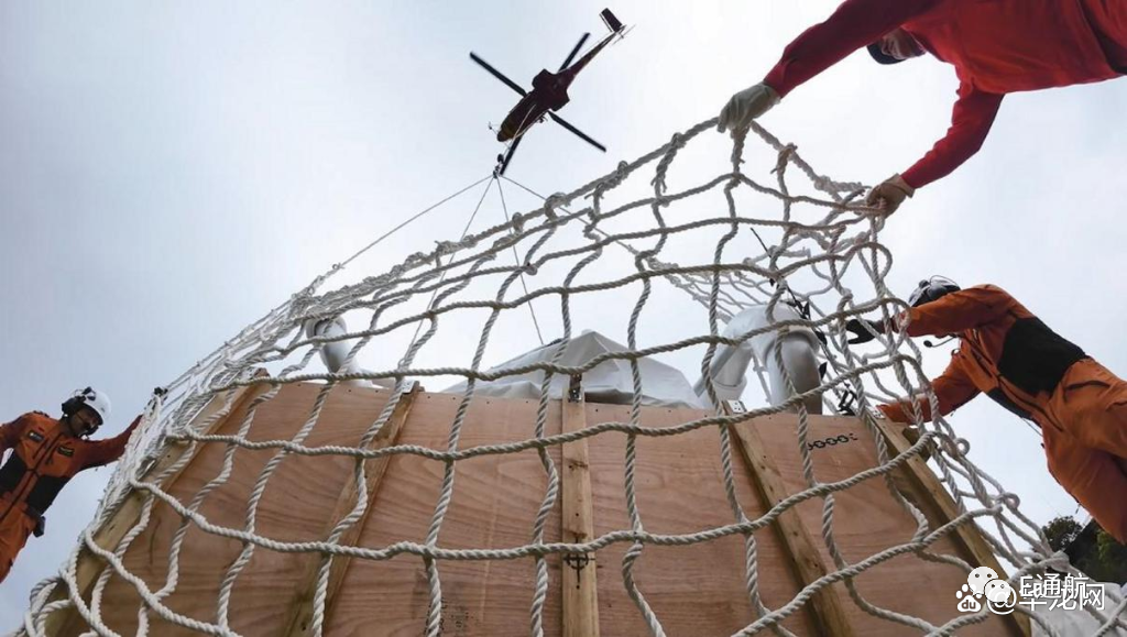 当天上午,一架H215直升机用吊篮“护送”着避雷器、金具等大件物资,缓缓靠近特高压复奉线504号塔。在直升机液压绞车作业人员操作下,吊装的物资缓缓下降到地面。