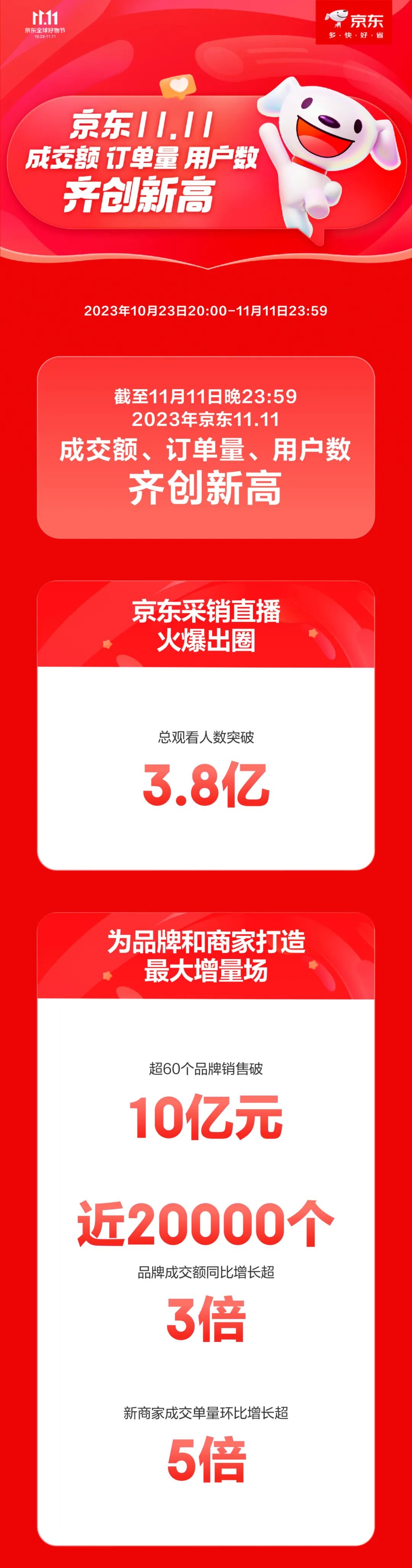 京东11.11的消费热情既受益于中国消费市场的持续复苏,也源于京东11.11携手众多品牌、商家为消费者带来的海量低价好物,更是京东20年来潜心锤炼数智化社会供应链能力的厚积薄发。