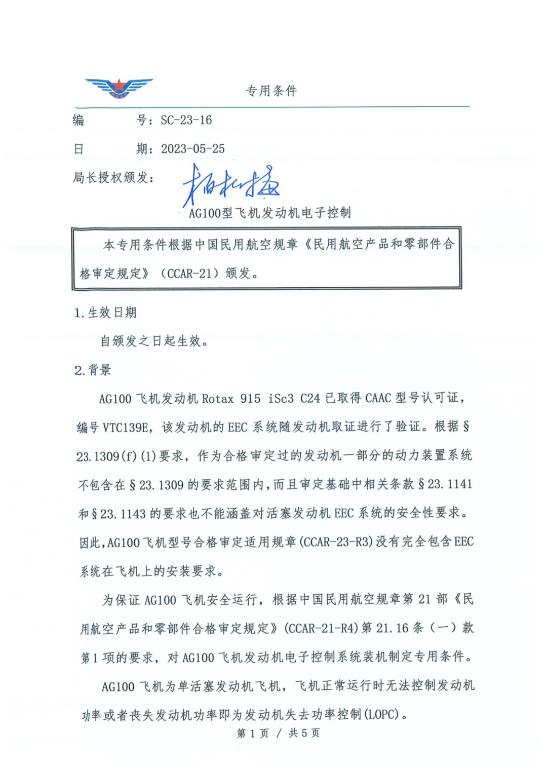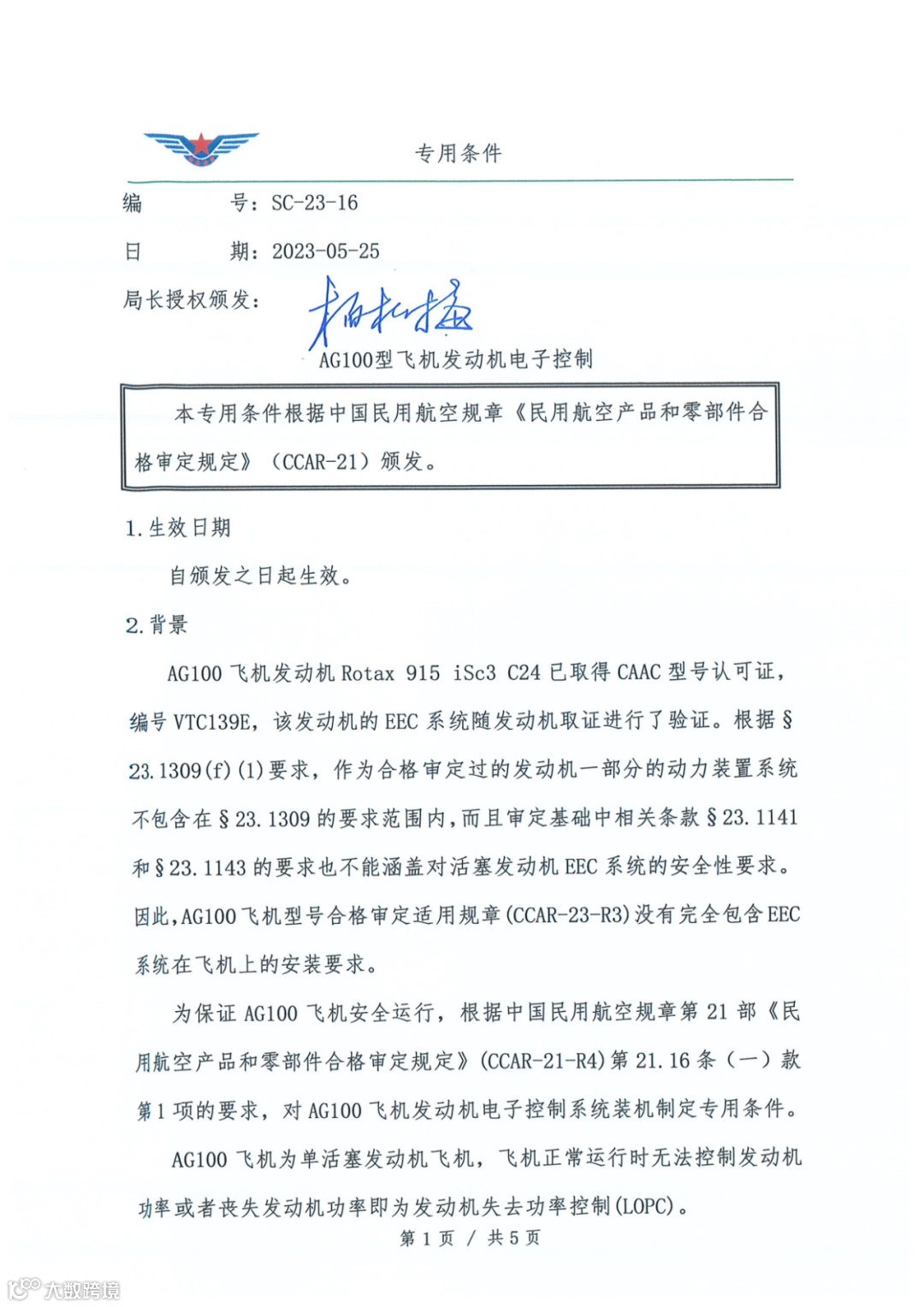 以下为《AG100型飞机发动机电子控制》(SC-23-16):